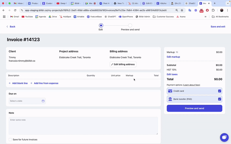 You can also add a markup per line item and access more display options to hide or show quantities, margins, and unit costs.