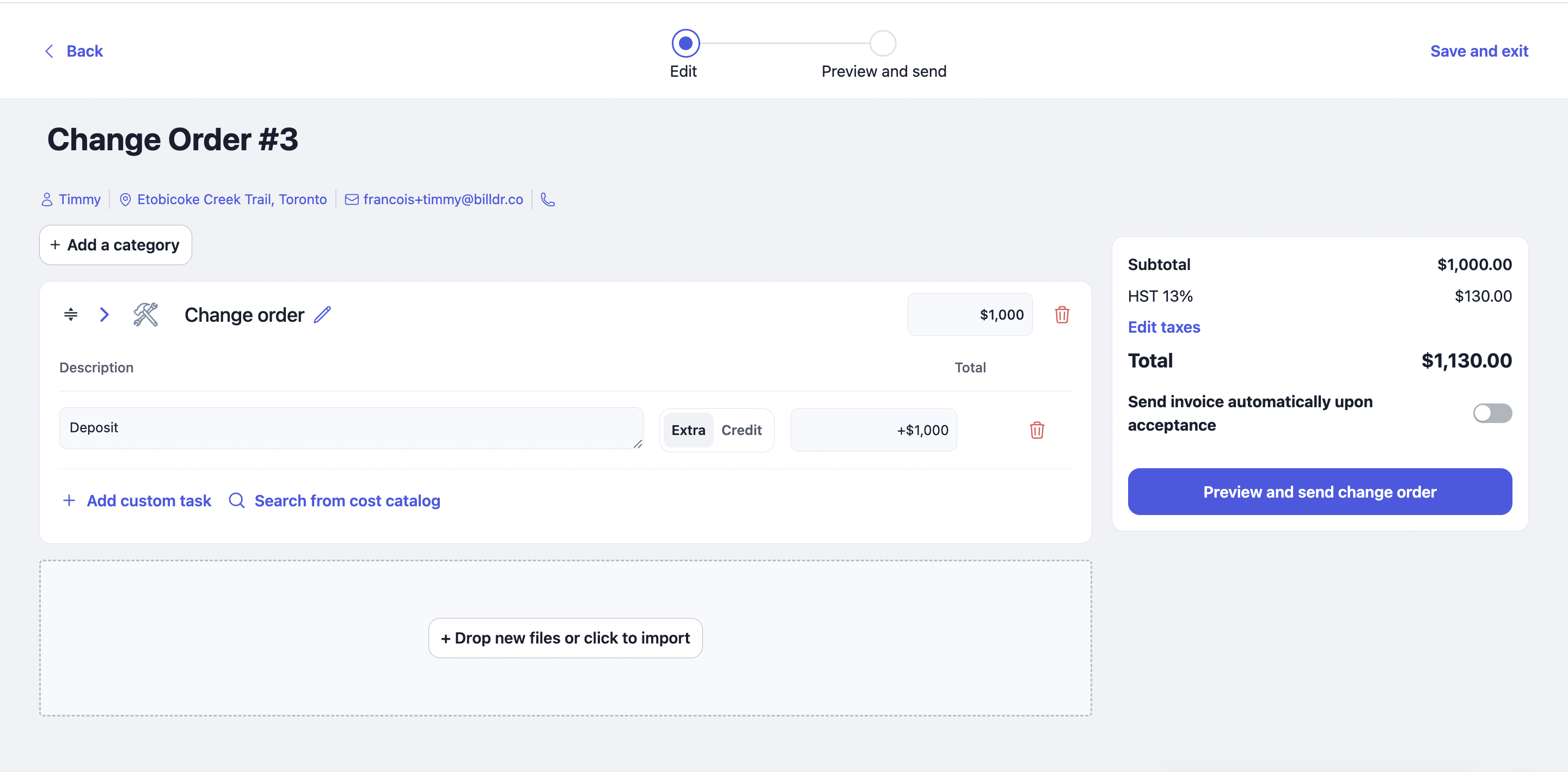 You can also search and add items quickly from your cost catalogue to create a change order.