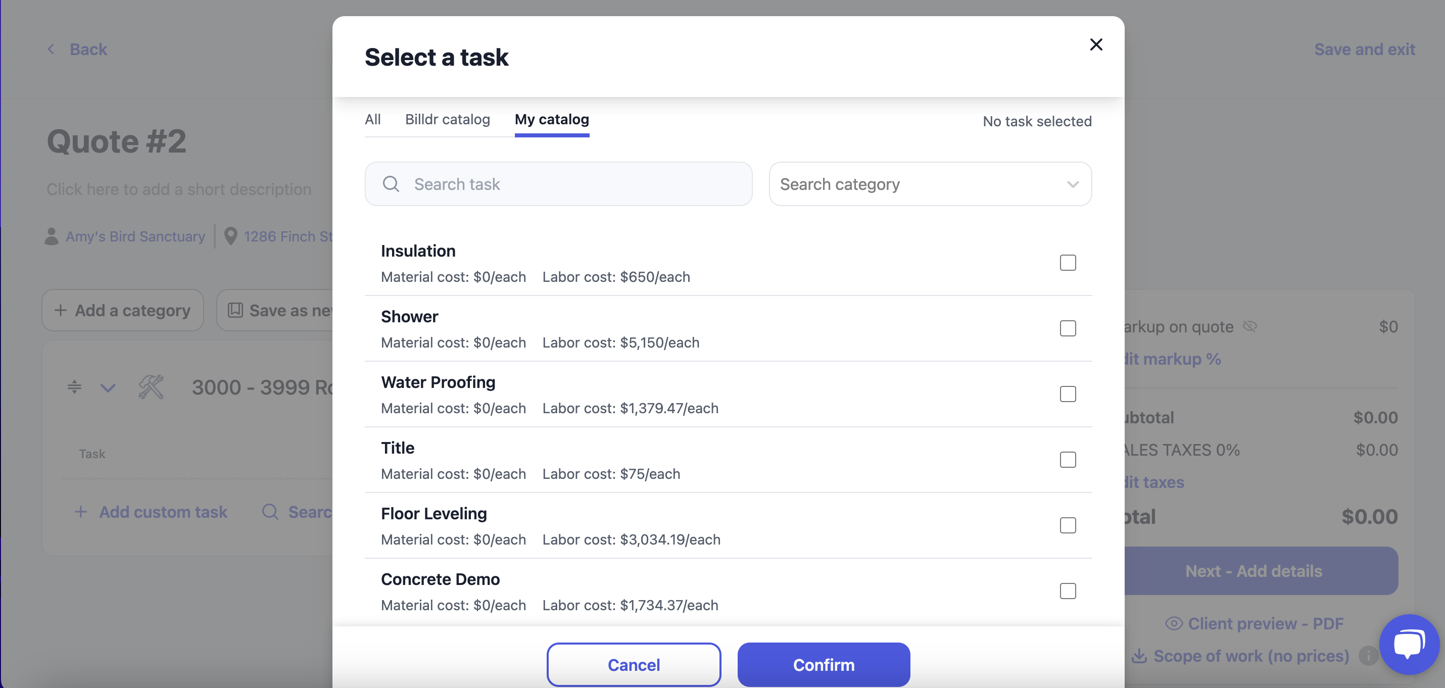 You can now view all your tasks and prices when creating a quote.