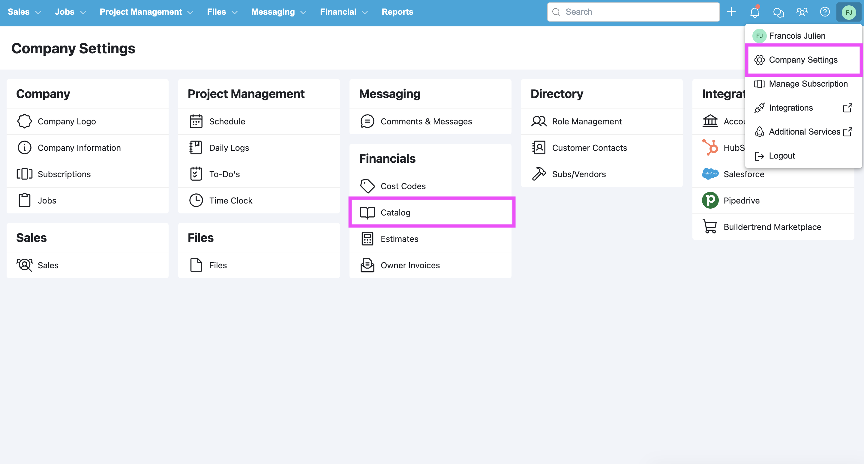 1. In Buildertrend, enter a project