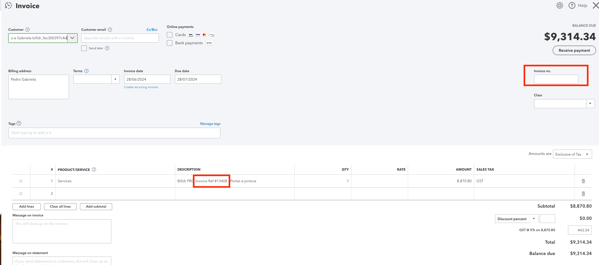 Option to pre-populate invoice number